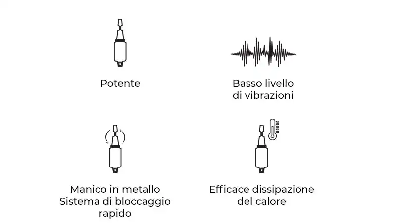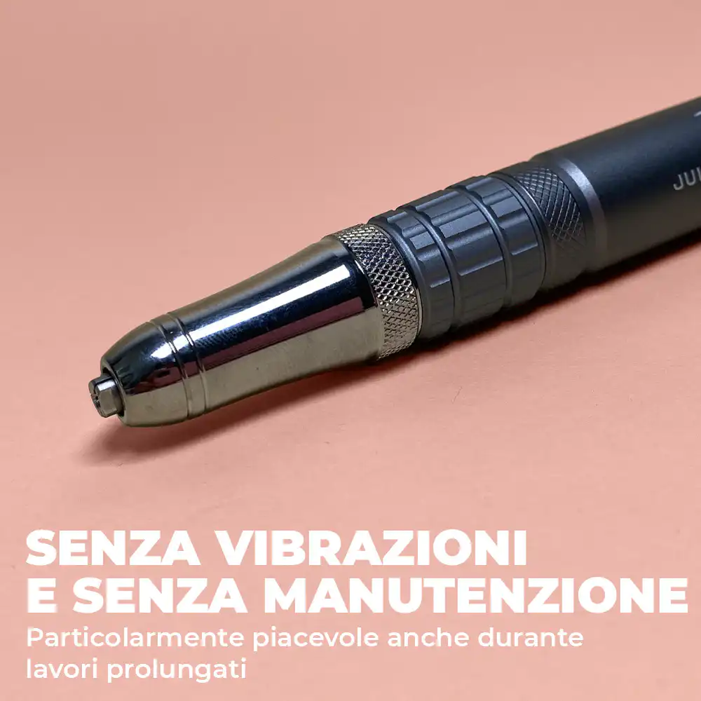 Grazie alla tecnologia senza vibrazioni, il manipolo offre un’esperienza di lavoro particolarmente piacevole. Garantisce una manovrabilità fluida e riduce al minimo l’affaticamento, anche durante sessioni di lavoro più lunghe. E il migliore? Il manipolo è assolutamente esente da manutenzione!