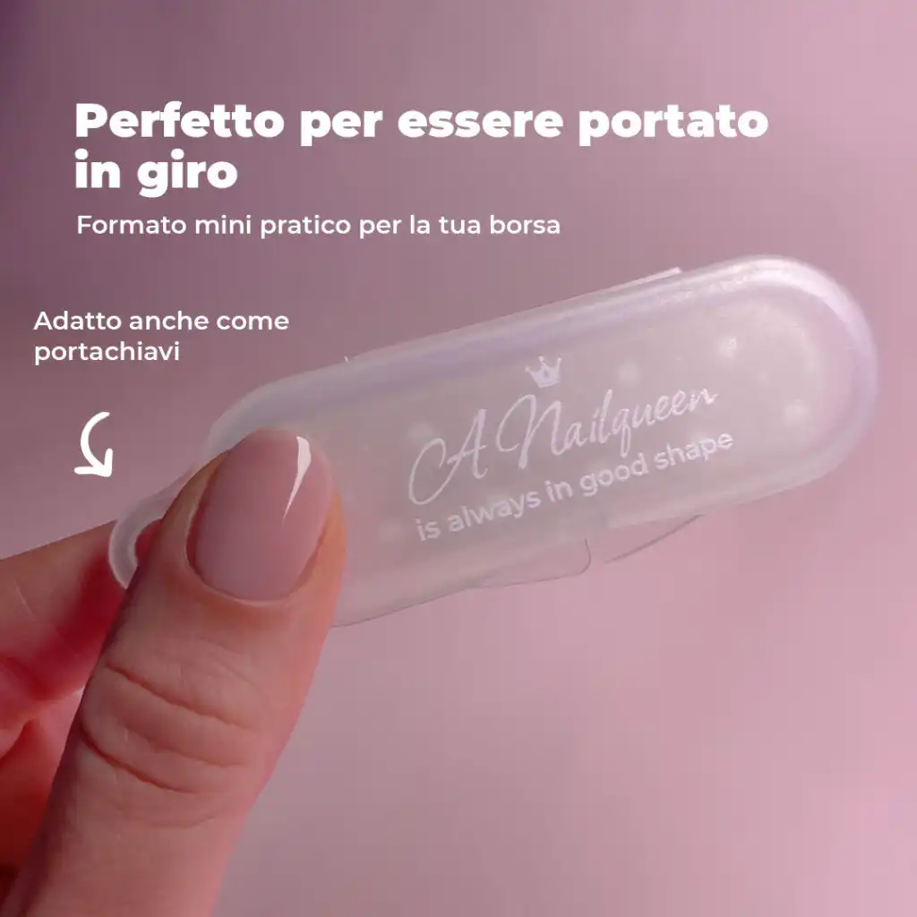 Questa lima si adatta perfettamente alla nostra [custodia Pocket Queen]. Protegge la tua cartella con stile e la mantiene sempre pulita, anche nella borsa. Ciò significa che la tua lima rimane sempre igienica e pronta per l’uso, non importa dove ti trovi!