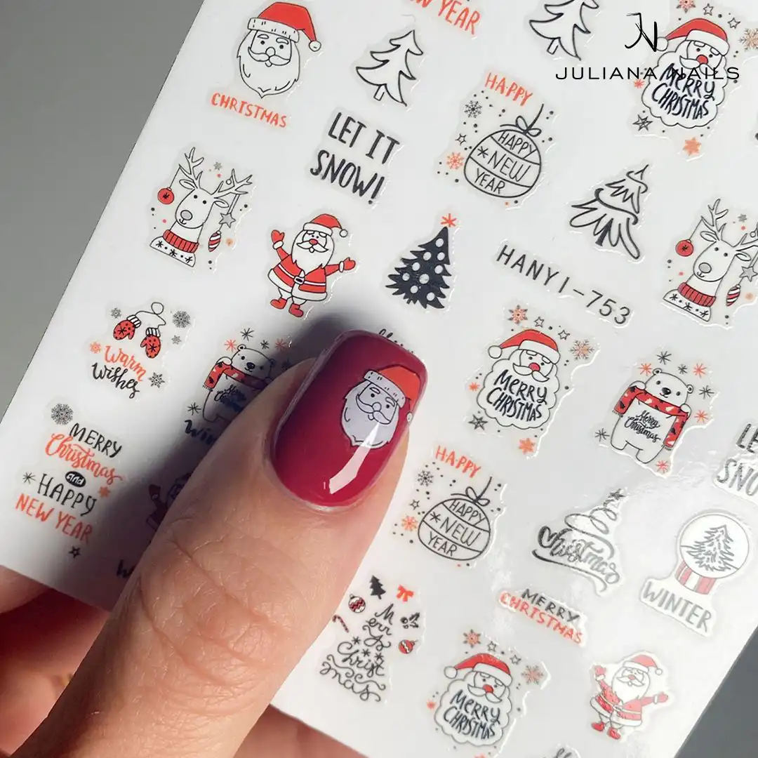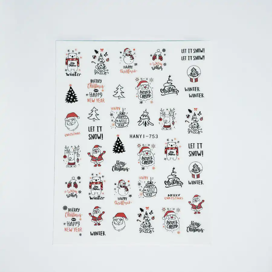 Gli adesivi per unghie – Christmas Lights7 contengono dolci motivi natalizi come Babbo Natale, alberi di Natale, renne e citazioni. Sono disponibili in nero, bianco e rosso e donano alle tue unghie un aspetto particolarmente moderno.