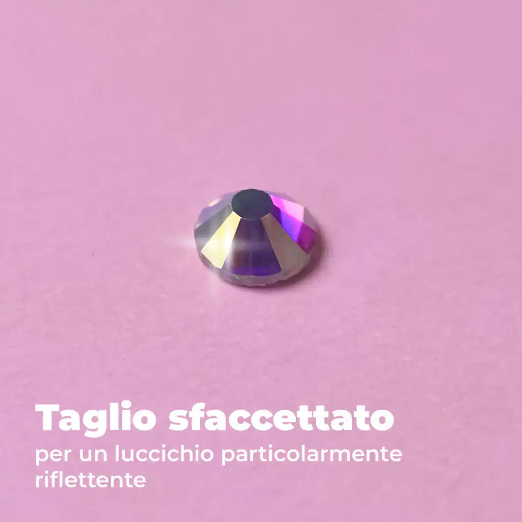 Il taglio sfaccettato fa brillare questi strass di alta qualità. Catturano perfettamente la luce e la riflettono in un gioco brillante e scintillante. Ogni movimento li fa brillare di colori diversi, come piccoli diamanti.