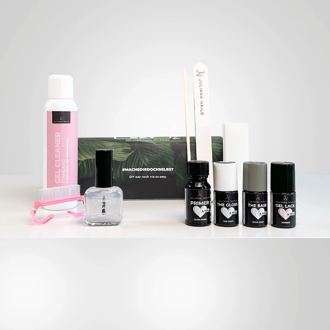 Con questo set puoi portare l’esperienza completa del salone di bellezza direttamente a casa tua. Contiene tutto il necessario per creare una manicure e pedicure professionale con smalto gel (= smalto UV) a casa. Vari prodotti per la preparazione delle unghie, base coat, top coat, colore e tutti i prodotti per rimuovere il vostro smalto semipermanente. La lampada UV/LED di questo set è particolarmente piccola e quindi si adatta anche al tavolo per unghie più piccolo.