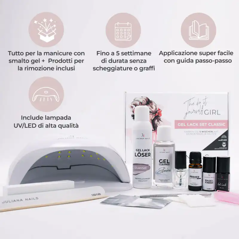 Non hai tempo per il salone di bellezza? Ottieni i tuoi risultati professionali in pochi minuti, senza costose visite in studio! Semplicemente da casa tua! Con la nostra lampada LED all’avanguardia e la facile applicazione, il tuo smalto gel durerà fino a 5 settimane , senza scheggiature o graffi .
