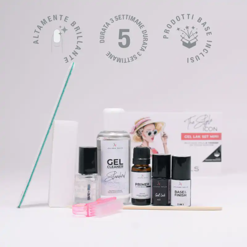 Il Kit Smalto Gel – Mini include tutti i prodotti base per una manicure e/o pedicure con smalto gel. È l’ideale se hai già una lampada UV o LED a casa tua.