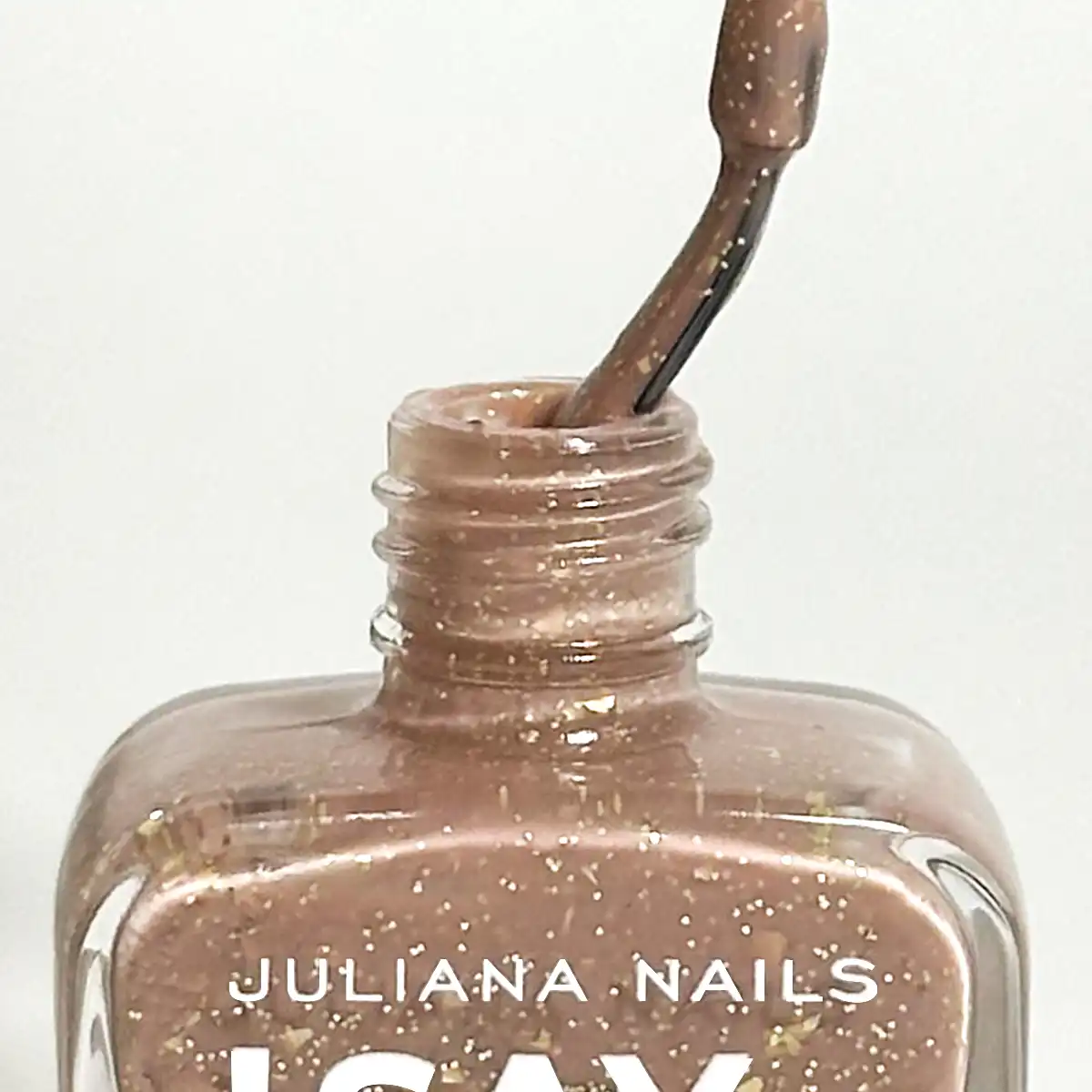 Vivi il fascino seducente dello smalto per unghie Say Stay! – Lily è un marrone nude chiaro con glitter dorato e scaglie, che ricorda l’eleganza delicata di un fiore di giglio.