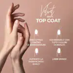 Il look opaco è più di una semplice tendenza, è un’attitudine! Con il nostro Velvet Matt – Top Coat, puoi creare facilmente questo look distintivo su tutti i tuoi smalti preferiti. Applicalo semplicemente come un normale top coat sul tuo smalto per unghie e trasformalo istantaneamente in uno smalto opaco alla moda.