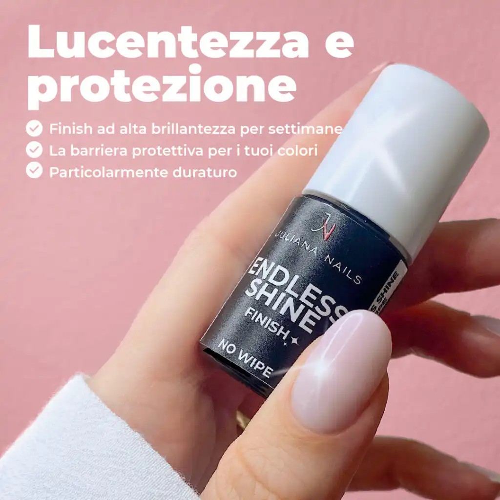 Ci affidiamo anche alla comprovata qualità da studio con la nostra linea di Smalti Gel Endless Shine Finish. Con quasi 25 anni di esperienza nel settore delle unghie, sappiamo esattamente cosa è importante. Una volta indurito, questo top coat è particolarmente resistente ai graffi e ai detergenti, ma rimane sufficientemente flessibile da evitare scheggiature. Ciò significa che puoi goderti un estremamente duraturo!