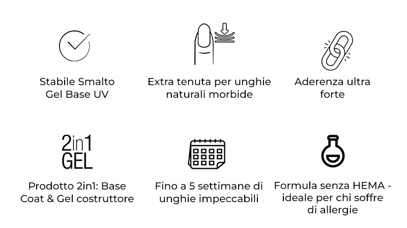 Questo gel è un vero multitalento: unisce i vantaggi di una Base Coat per Smalto Gel con la stabilità di un gel da ricostruzione.