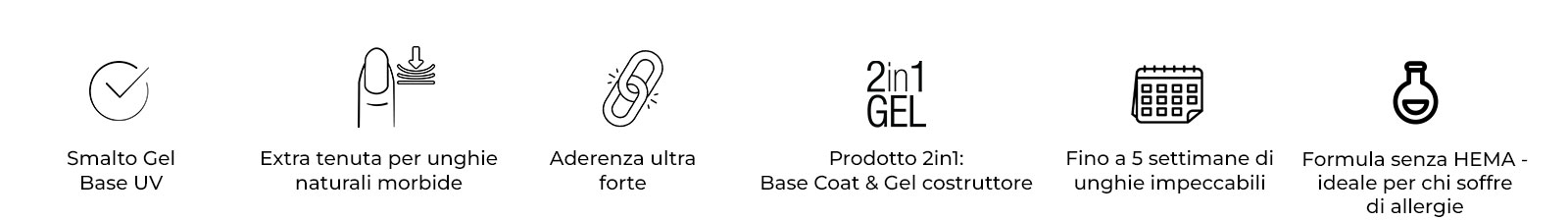 Oltre a donare un aspetto straordinariamente naturale, offrono fino a 5 settimane di tenuta e una formula delicata senza HEMA, per unghie belle e resistenti senza troppi sforzi!