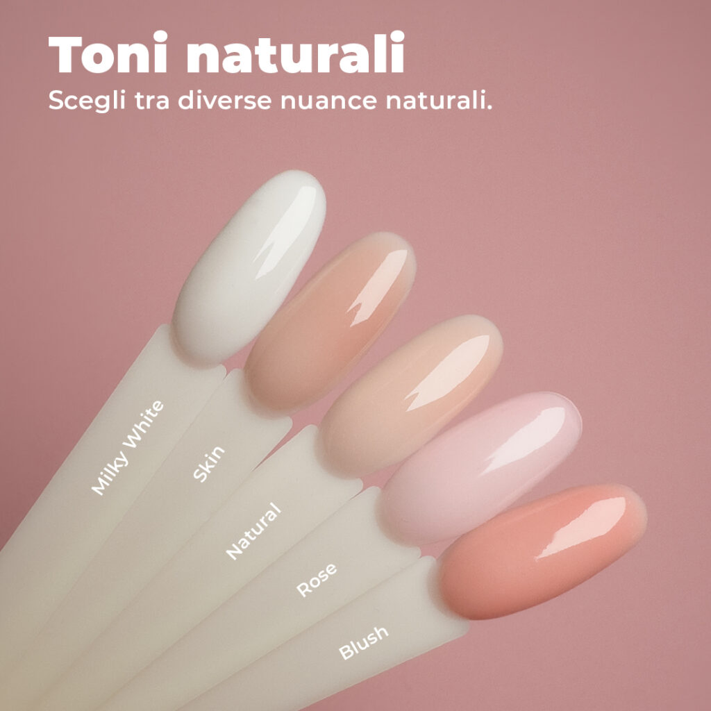 Il nostro Rubber Base Gel è disponibile in tante bellissime tonalità naturali. Dal delicato nude all’elegante bianco latte, ce n’è per tutti gli stili. Puoi indossare i colori da soli per creare un look delicato e naturale, oppure usarli come base perfetta per i tuoi Smalti Gel.
