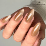 Lo Smalto Gel Cat Eye Galaxy Latte è un marrone tenue con delicati pigmenti marroni scintillanti.