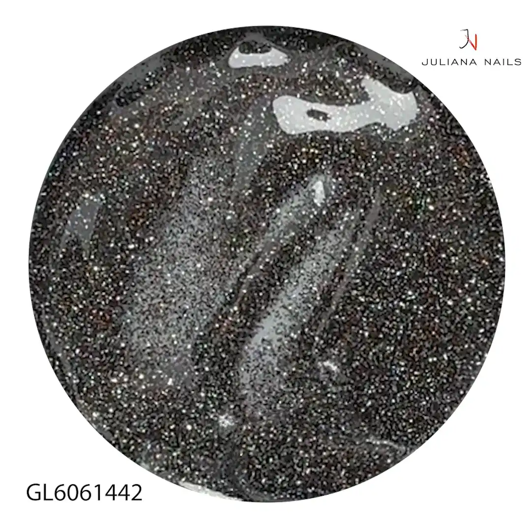 Lo Smalto Gel Ferris Wheel è un mix di glitter molto scuri di antracite, argento, marrone scuro e rosso per una finitura spettacolare.