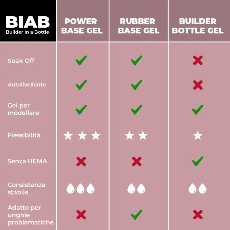 Qual è la differenza tra il gel Builder Bottle e il Power Base Gel o il Rubber Base Gel?
